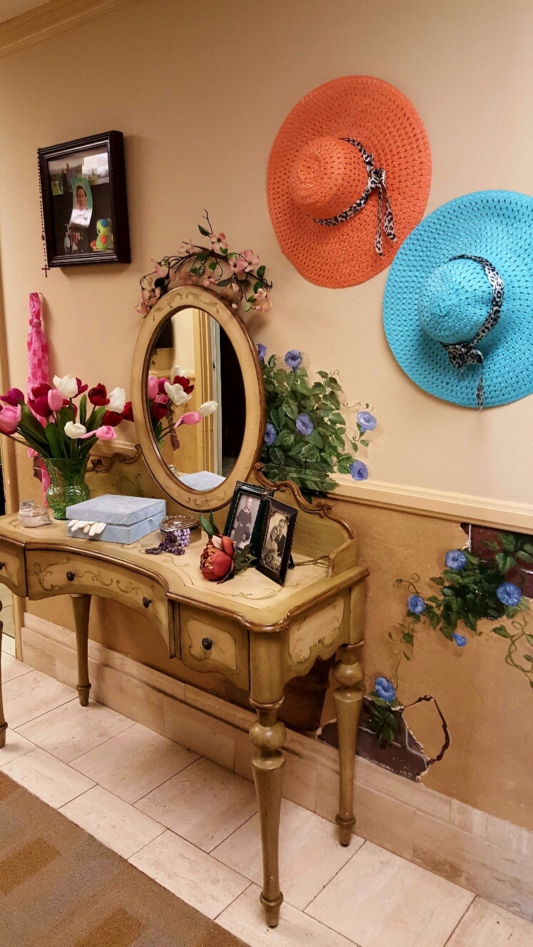 Memory Stations are reminders of the past, helping residents rediscover moments, emotions and connections forgotten along the way. These self-directed activity areas allow residents to interact with cheerful, themed “stations” on Memory Lane. Residents who worked in offices find comfort in sitting at an office desk with a typewriter and other tools of their trade. For women who were housewives and mothers, stations with a vanity and make-up, or dolls and familiar photos create a cozy retreat within the community. Each space is designed with care and attention to detail to provide residents with a stimulating and rewarding environment.